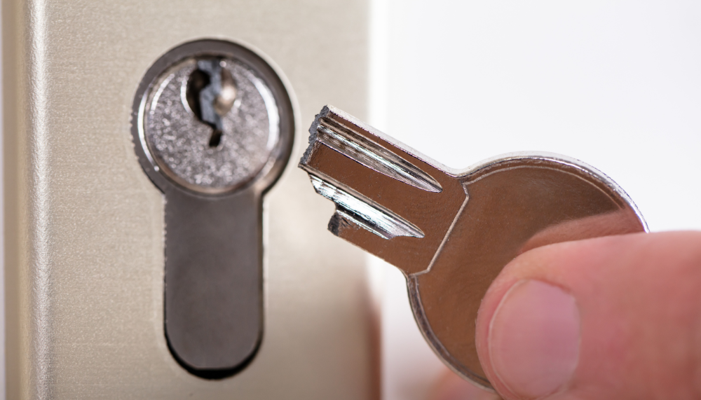 - La clé cassée dans la serrure demande une intervention délicate pour extraire le fragment sans abîmer le mécanisme. Une mauvaise manipulation peut rendre la serrure inutilisable et nécessiter son remplacement complet.